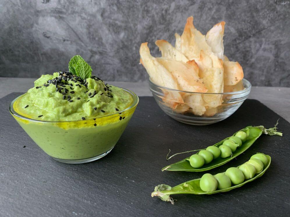 Aprovechando que es temporada de guisantes, hoy una receta de hummus diferente! El hummus sirve como aperitivo, snack de media tarde, para untar las tostadas