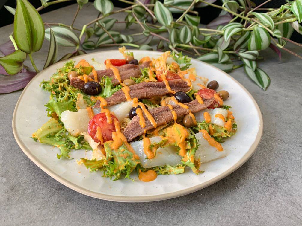 La XATONADA es una receta tradicional de la zona del Penedés y el Garraf, en Cataluña. Se trata de una ensalada de escarola con anchoas,