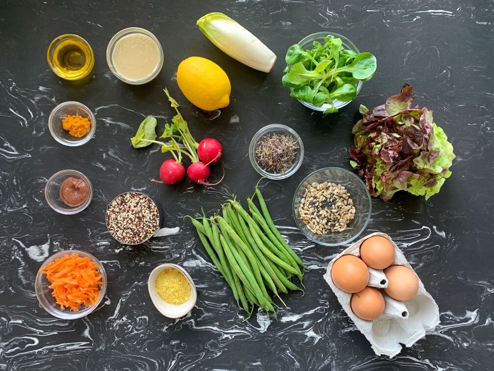 - Finalmente, sirve todos los ingredientes en el plato y aliña con la vinagreta. ¡Bon appétit!