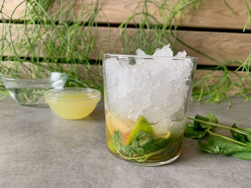 - Añade un par de ramas de menta en cada vaso y cháfalas también.