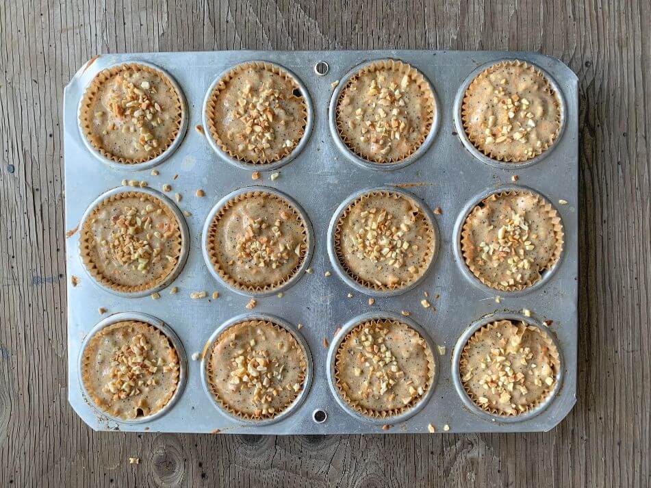 - Hornea por 25-30 min. Hasta que pinches los muffins con un palillo y éste salga limpio. No abras el horno hasta que no hayan pasado por lo menos 20 min que sino no subirá adecuadamente.