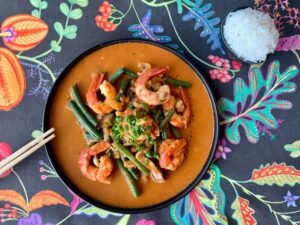 - Sirves en los platos el pollo acompañado de las judías verdes y encima de éstas, les añades un hilo de AOVE y las semillas de sésamo.